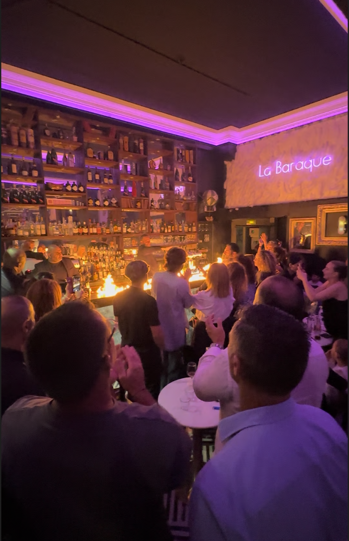 Poussez la porte de l’établissement et découvrez un lieu unique en plein cœur du 11ᵉ arrondissement. Dès votre arrivée, la Baraque vous plonge dans un décor baroque et chic. Des cadres dorés, des tableaux rustiques et des miroirs recouvrent les murs du premier étage.